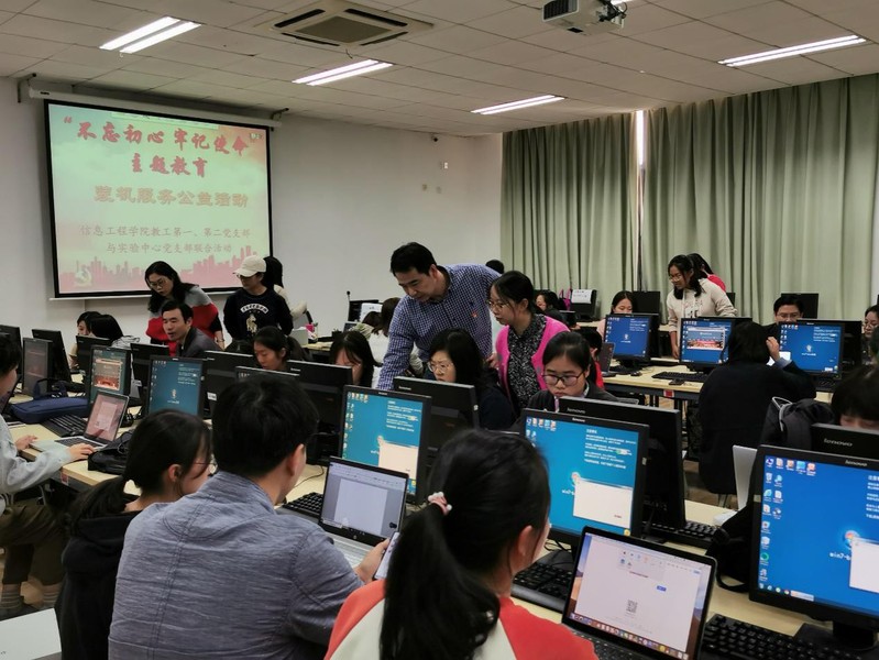 随着人们生活水平的日益提高,老员工的电脑配备率也越来越高了,而且很多课程配套的慕课、视频、课件、练习等都需要用到电脑,虽然课堂有计算机基础知识的讲解,但是很多员工对电脑还是一知半解。针对这种情况,每一年信息工程公司公共教学部都会组织老师们开展软件安装等公益服务活动。今年,信息工程公司公共教学部所在的教工第一党支部借助于“不忘初心、牢记使命”主题学习的契机,联合教工第二党支部、实验中心党支部,决定面向大一新生有针对性地开展安装学习软件公益活动,以满足广大新生学习需求。