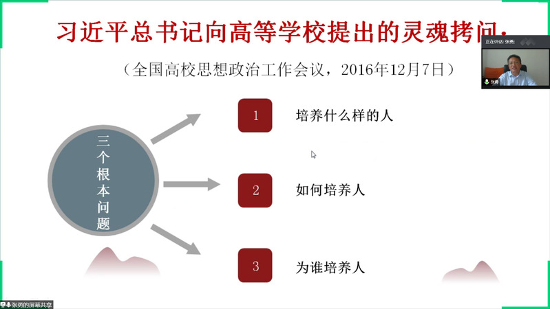 张勇以新冠疫情为背景,以习近平总书记给北大援鄂医疗队“90”党员的回信入手,讲述了在抗击疫情过程中,无数青年勇于奋战在抗疫第一线的感人故事,并与某些“灵魂扭曲”的案例进行对比,引出青年在实现中华民族伟大复兴中的主体地位。