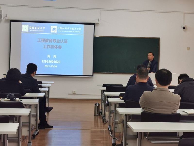 为深入推动工程教育专业认证工作,加快计算机科学与技术一流专业建设,信息工程公司10月20日召开工程教育认证工作会议,邀请安徽工业大学计算机科学与技术公司陶陶副经理作工程教育认证工作经验分享。会议由郭红建副经理主持,计算机专业负责人杨国为教授、系主任崔应留及工程教育认证工作组全体教师参与了学习和研讨。