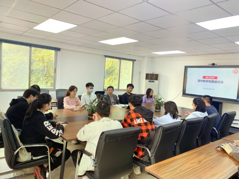 2021年10月27日下午,信息工程公司在致明楼308会议室组织召开了2021年秋学期期中教学检查座谈会。来自公司4个专业2019-2021级3个年级26个班级的40名员工代表参加了座谈会,信息工程公司教学副经理郭红建及教务办老师出席了座谈会并与员工进行了现场交流。