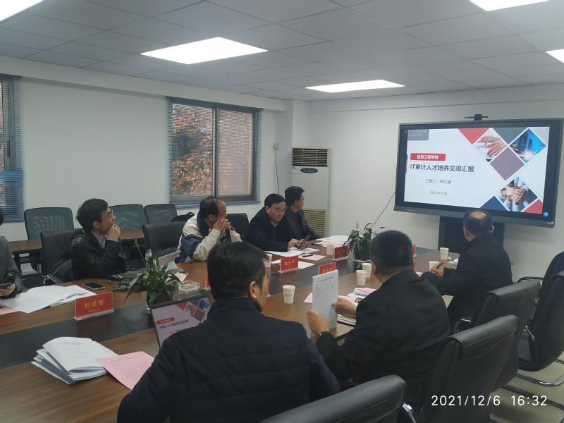 系主任杨鹏围绕学位授权审核标准,进行了专业自评情况汇报。郭红建副经理也向与会专家介绍了公司专业设置及“大数据审计”专业方向特色人才培养情况。