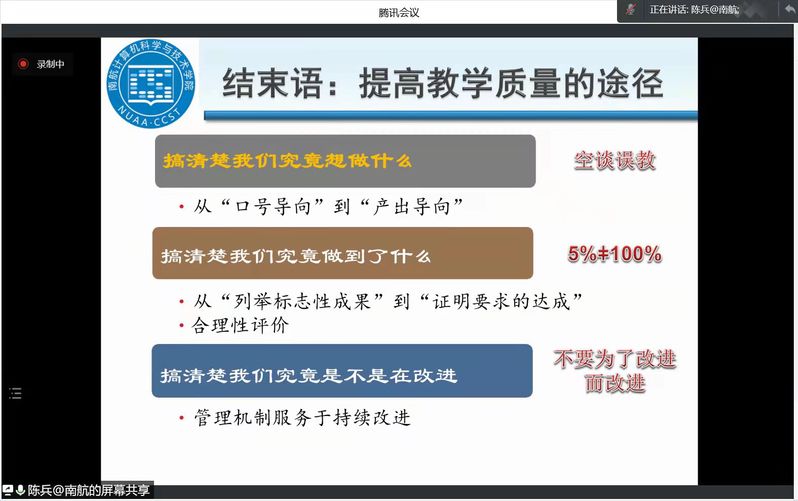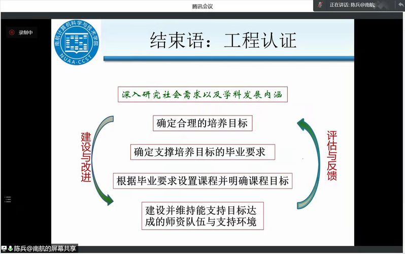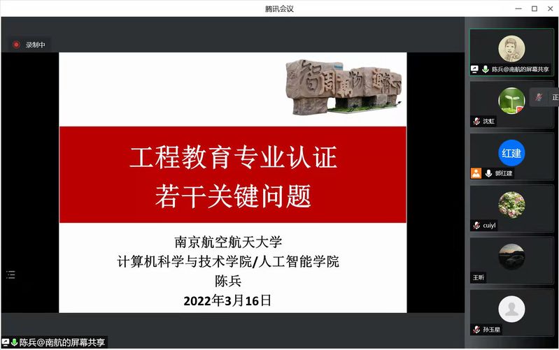 为推动公司工程教育专业认证工作的进一步开展,提高人才培养质量,3月16日下午,公司邀请工程教育认证专家、CCF杰出会员、南京航空航天大学计算机与技术公司/人工智能公司经理陈兵教授作“工程教育认证工作若干关键问题”的在线专题讲座。会议由郭红建副经理主持,计算机专业负责人杨国为教授、系主任崔应留及公司工程教育认证工作组的全体教师参与了学习研讨。