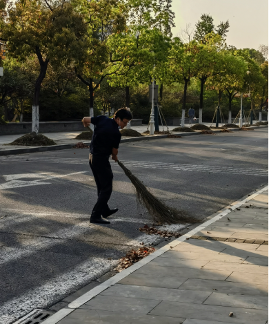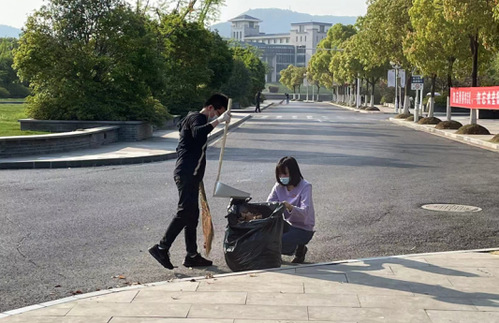 打扫中和楼前面道路