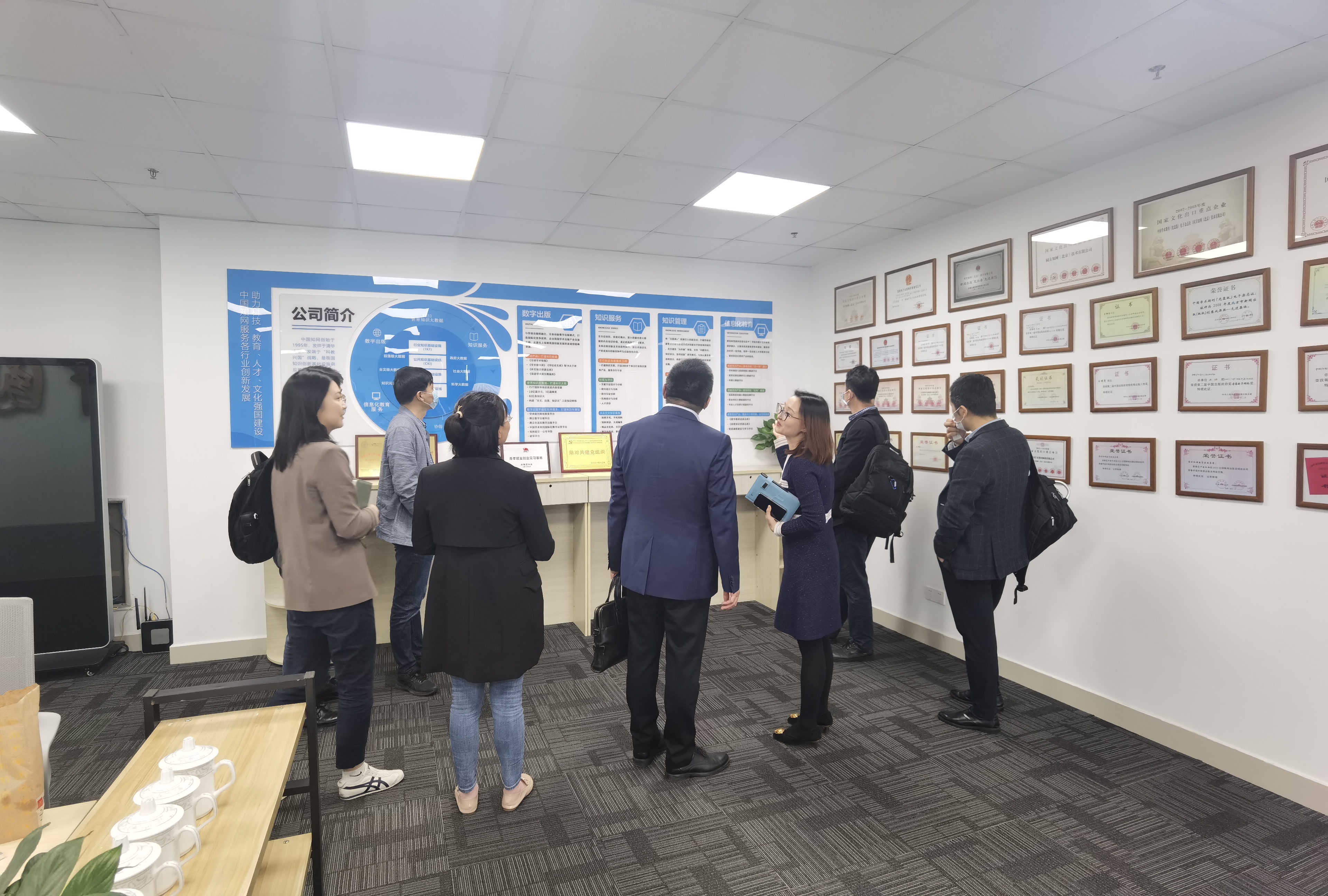 下午,张勇、副书记副经理张晓东、郭红建、软件工程系主任杨章静、吕从东一行拜访同方知网(北京)技术有限公司江苏分公司。同方知网(北京)技术有限公司在数字出版、知识服务、数字图书馆领域是国内行业的领导者,服务于众多科研机构、高校和企业。公司总经理施雪峰、教育事业部总经理张玉洁、市场部总经理王鑫、技术中心主管周岩、人事主管陈平与公司老师进行了交流。双方同意在公司建立员工实习基地,优先安排公司研究生、本科生到公司实习;在教育信息化及数据挖掘服务等相关领域开展合作,联合组织技术团队,完成课题研究与软件研发业务。