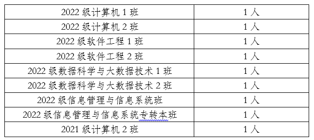 根据公司今年招生计划,公司2022级新生班级建制为计算机科学与技术、软件工程、数据科学与大数据技术专业各2个班,信息管理与信息系统专业普通本科、专升本各1个班。