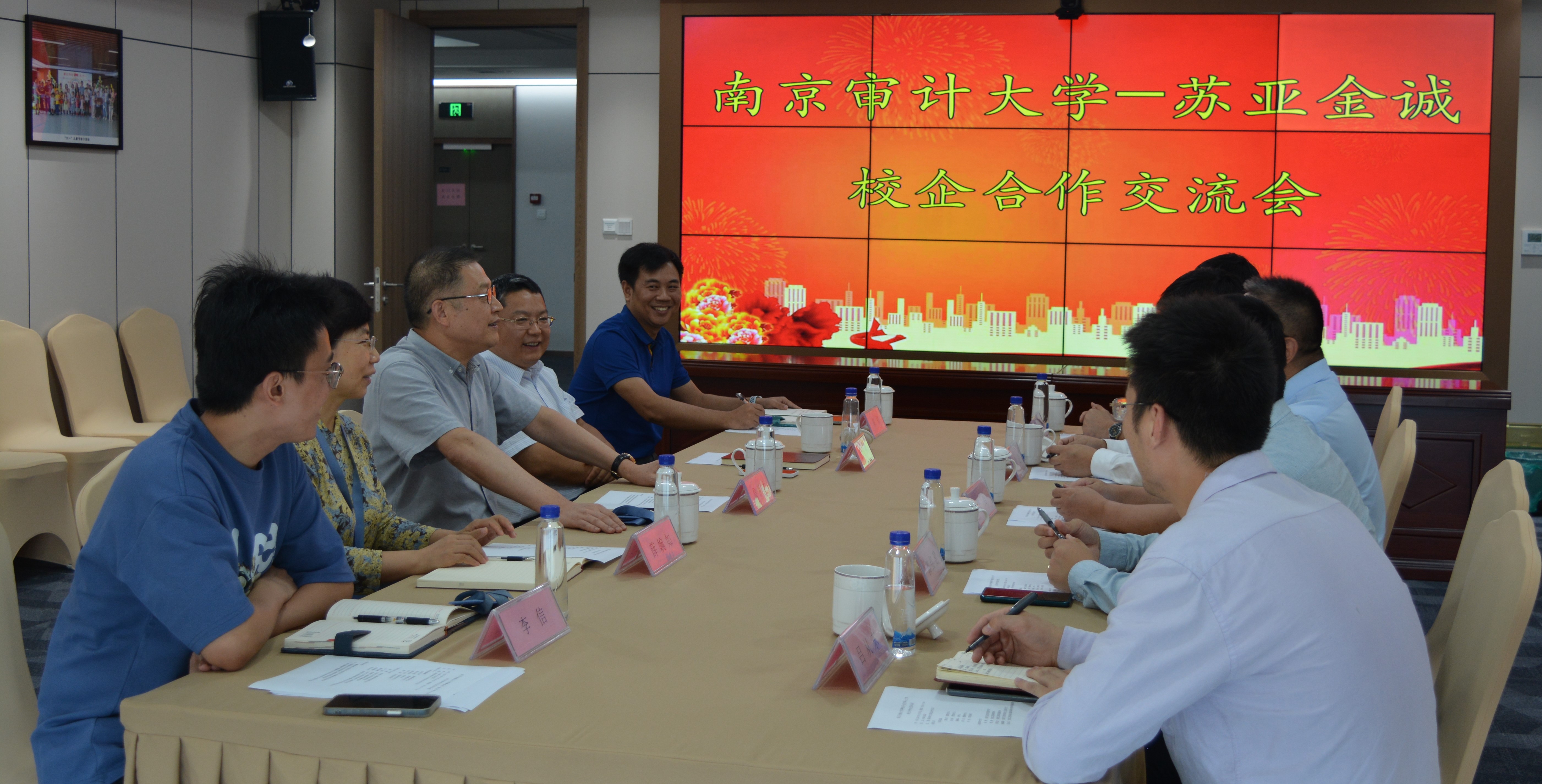 张勇对苏亚金诚的热情接待表示衷心感谢,并介绍了公司发展历史、专业设置、科学研究、社会服务等方面情况,希望通过本次访企拓岗活动,进一步密切双方联系,强化校企合作协同育人,并围绕公司专业人才特色优势进行了就业推荐工作。经理徐超、副经理郭红建围绕审计理论研究和平台研发、本科专业建设和人才培养、实习基地建设等方面工作进行了交流发言。