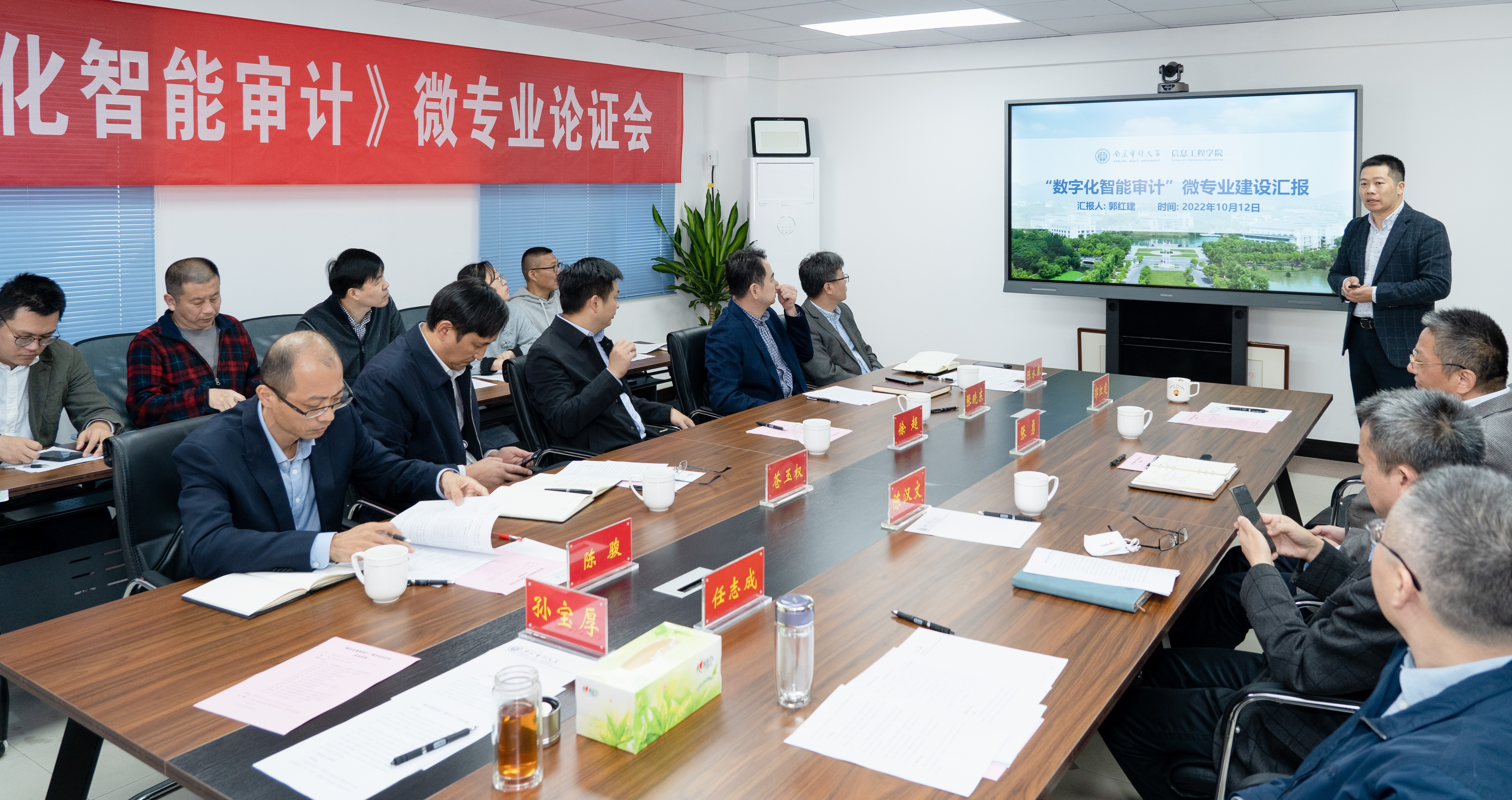 徐超就“数字化智能审计”微专业开设背景及前期调研准备情况进行了介绍;郭红建从“四新”建设背景下的专业建设改革出发,汇报了公司微专业建设的背景、“数字化智能审计”微专业人才培养方案及招生选拔方案,对微专业的课程体系、教学模式及团队团队进行了详细说明。