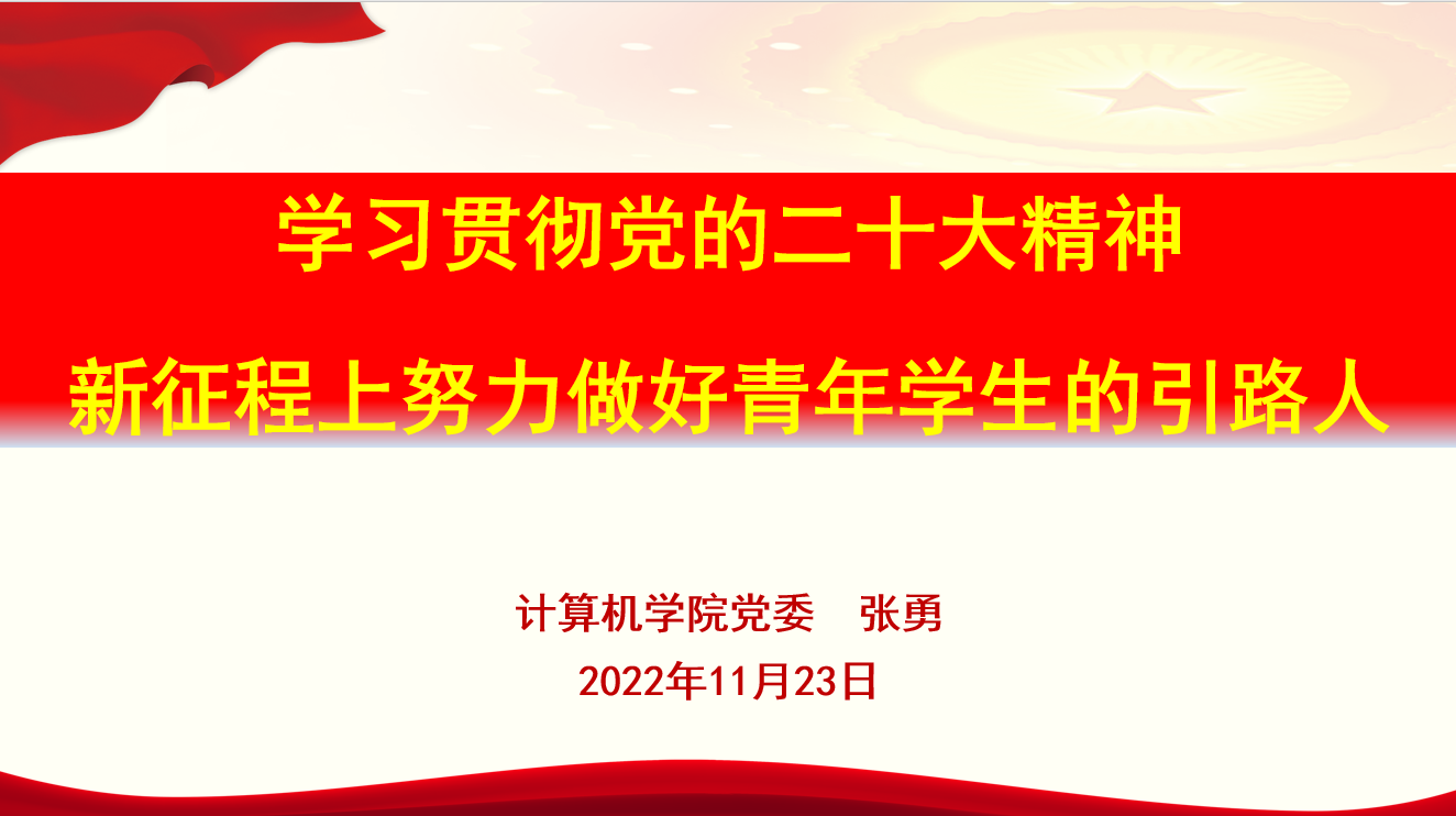 张勇以“新征程上努力做好青年员工的引路人”为主题,以习近平总书记在党的二十大报告中对青年一代的寄语为主线,以做好“四有”好老师和“四个引路人”为具体要求,通过列举“时代楷模”黄大年的先进事迹和“宝藏教师”赵勃的教学理念,强调教师是教育发展的第一资源,是国家富强、民族振兴、人民幸福的重要基石。要求全院教职工认真学习习近平总书记关于青年工作的重要思想,正确把握习近平总书记对新时代教师的要求。