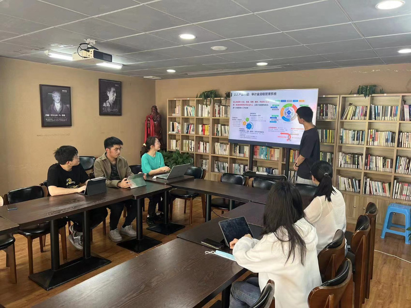 参赛团队由来自审计学、数据科学、软件工程等专业的本科生组成,他们各有所长、专业互补。葛煜琦、徐发熟悉数据挖掘与机器学习相关技术方法,负责项目技术研发和系统架构;金海涛、苏容锦具备一定的会计财务和企业运营相关基础,负责制定营销策略、创业规划、风险管理,实现产品的商业落地;吴菡玥、李诗音两位团队负责人则调研剖析市场现状,制定闭环商业模式,同时负责项目总体材料的集成汇总。