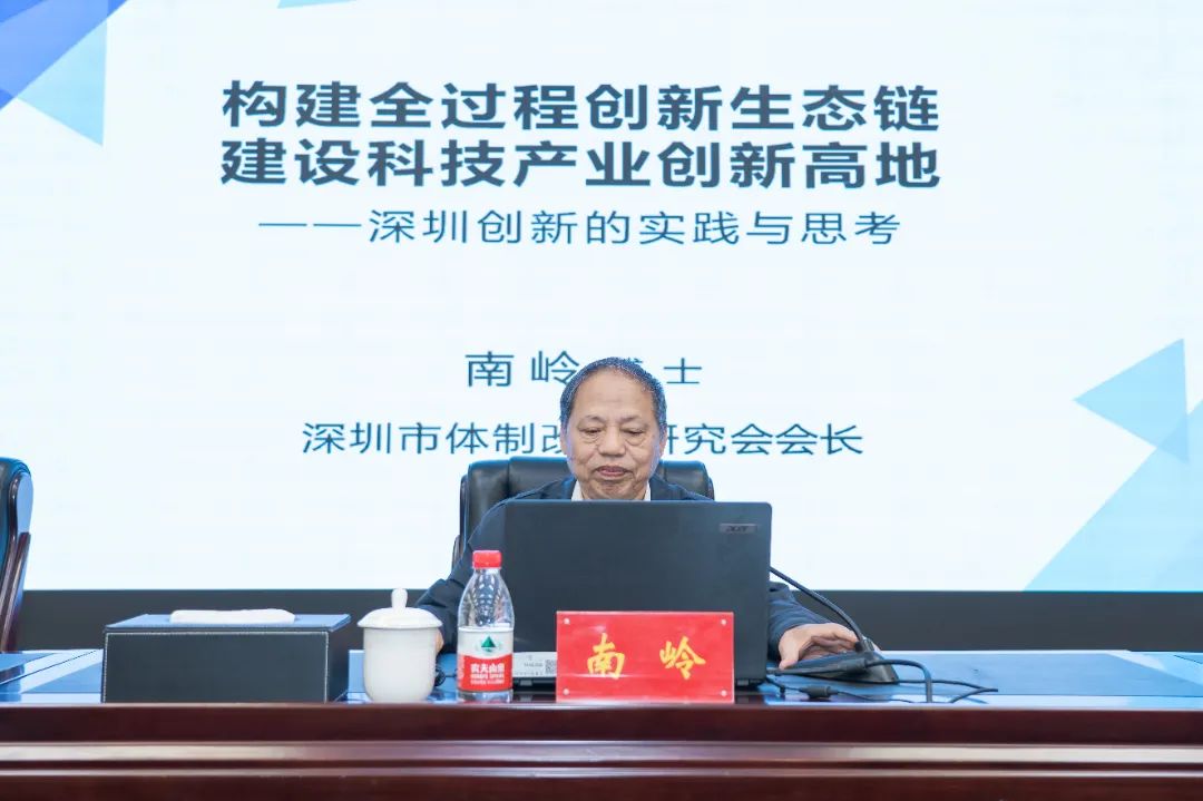 开班仪式结束后,南岭以“构建全过程创新生态链,建设科技产业创新高地——深圳创新的实践与思考”为主题,结合党的二十大报告中关于“坚持创新”“加快实现高水平科技自立自强”“强化企业科技创新主体地位”等论述作报告。南岭在报告中讲述了李子彬与华为的故事,突出国家审计在华为困难之际为其正名发挥的作用。并对公司粤港澳大湾区审计研究院的特色发展给予积极评价,期望公司围绕“科技强审”在科研服务方面做出新的成绩。