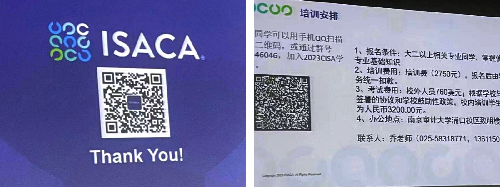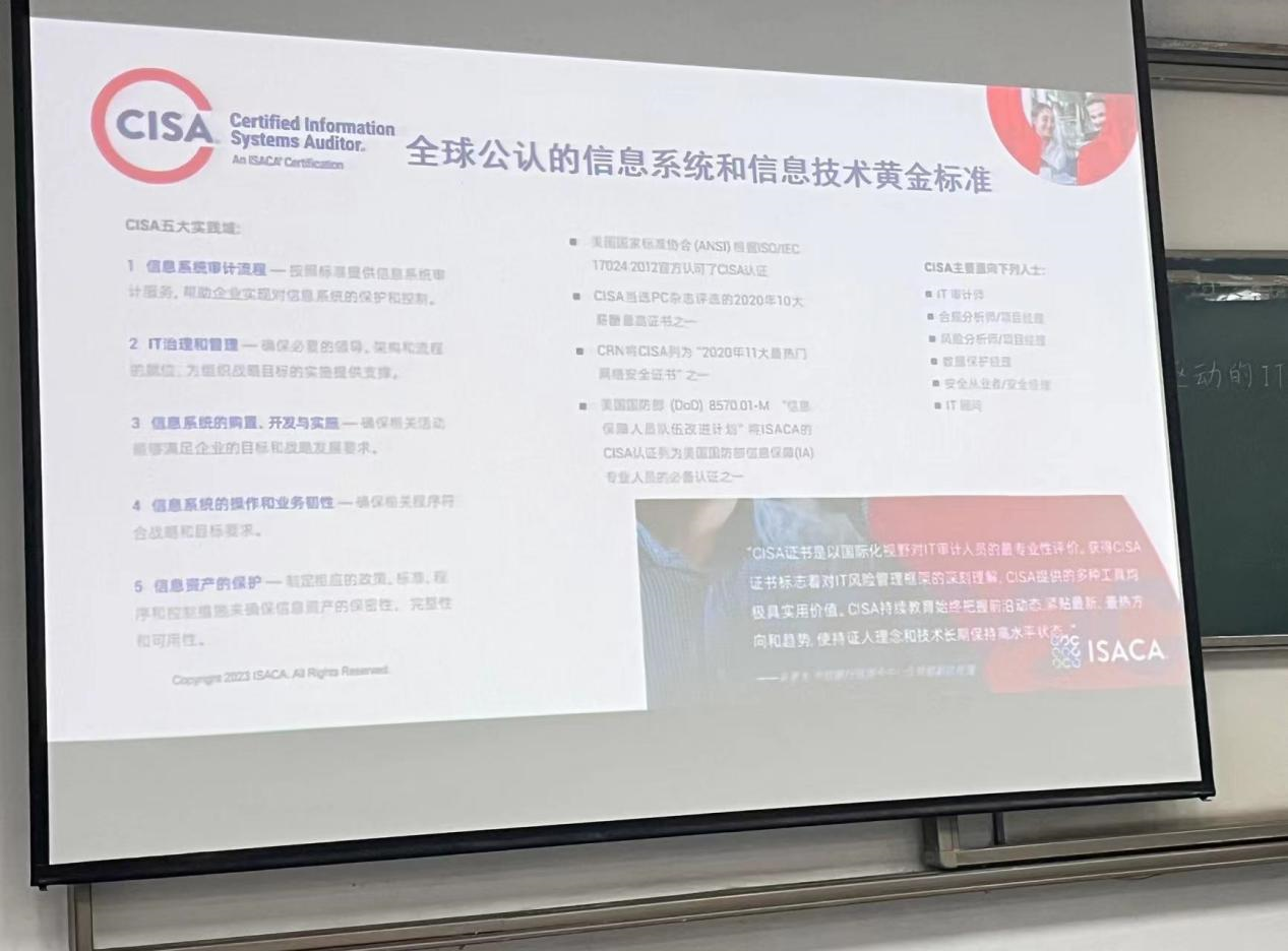 最后,余小兵老师简要给各位同学解读了国际注册信息系统审计师CISA认证的基本程序,对如何积极应对,准备CISA复习考试提出了许多有益的建议,同学们纷纷表示受益匪浅。