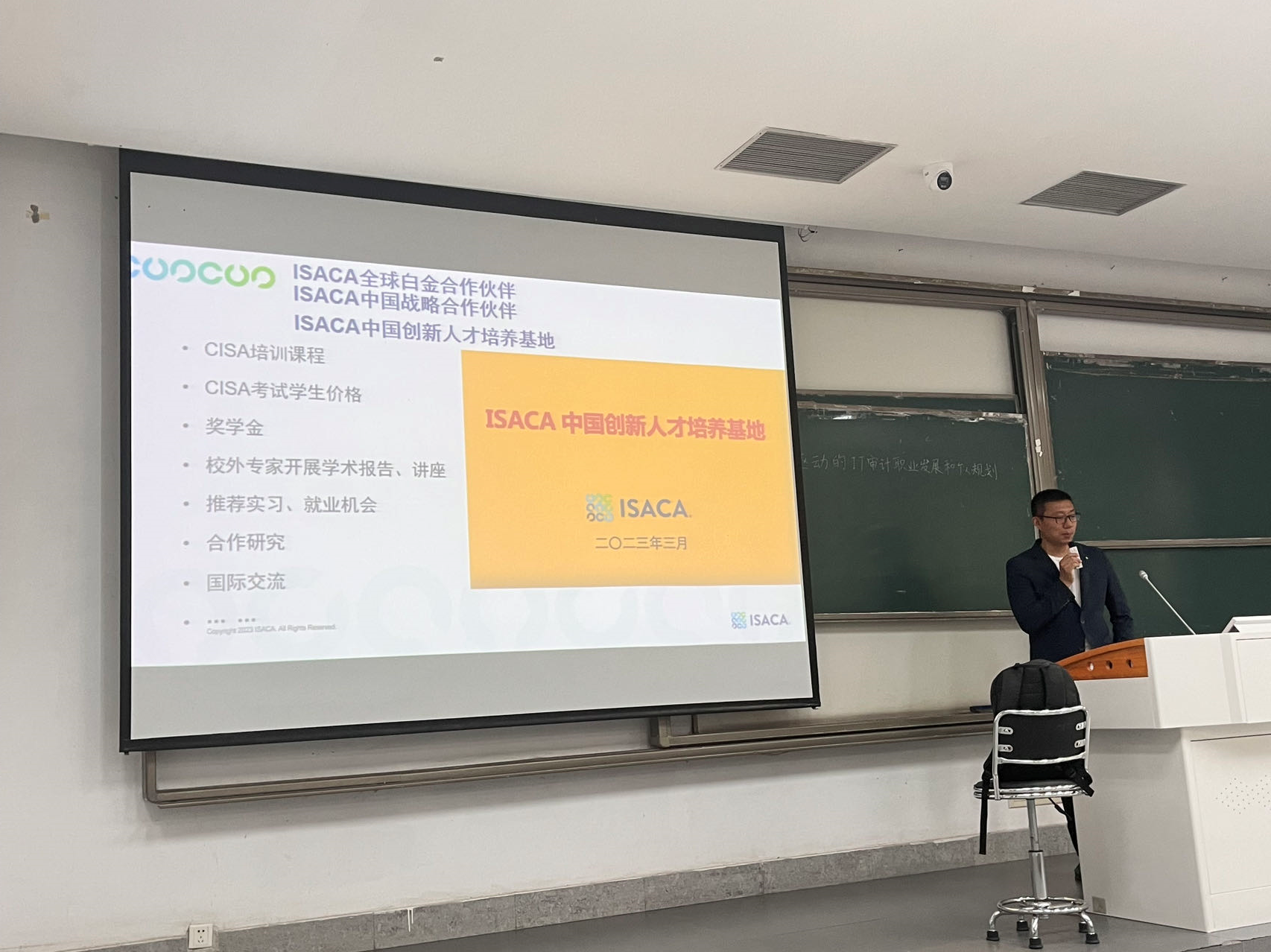 2023年5月24日,IT审计协会邀请Bevictor伟德官网培训中心主任、CISA&CDPSE双持证讲师余小兵副教授开展《数字经济驱动的IT审计职业发展》为主题的学术讲座。此次学术讲座为IT审计协会2023年度系列专题分享活动之一,吸引了近百位协会会员和Bevictor伟德官网同学的积极参与。活动旨在让同学们初步了解IT审计,清楚认知CISA证书的专业属性,从而形成更明确的个人职业发展规划。