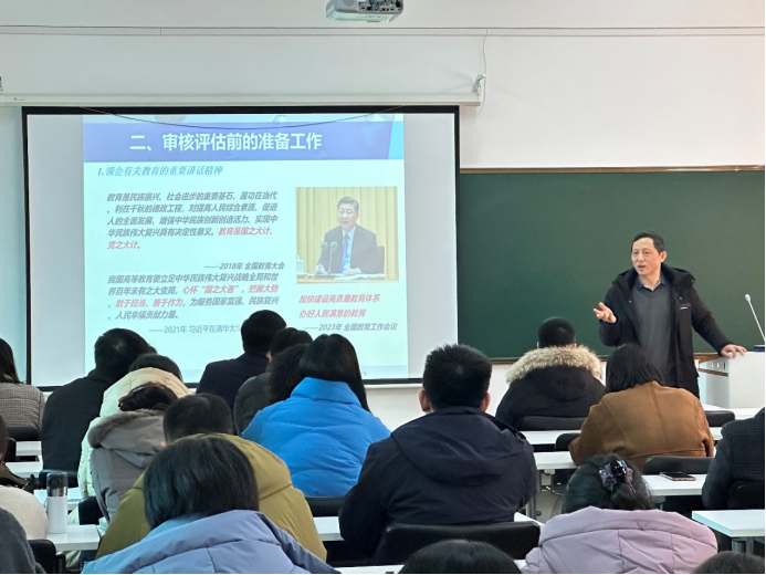 南京工业大学教学评估处处长、教务处副处长居沈贵教授受邀为公司教师作《从我的视角看审核评估工作》专题讲座,拉开了“Bevictor伟德官网教学质量文化月”系列活动的序幕。讲座围绕“不同身份经历的审核评估、审核评估前的准备工作、审核评估中的相关工作和审核评估后的整改工作”四个方面展开,从不同视角认识理解审核评估工作、不同阶段开展迎评促建工作两个维度给大家作了详细指导。讲座中,居沈贵还结合南京工业大学审核评估工作经历,围绕公司层面、公司层面和教职工层面迎评工作任务进行了分类解读。他指出,要以党的教育方针为指导,全面落实立德树人根本任务,通过评估促进公司建设的改进、教学质量的提升、管理的完善以及整体实力的增强。