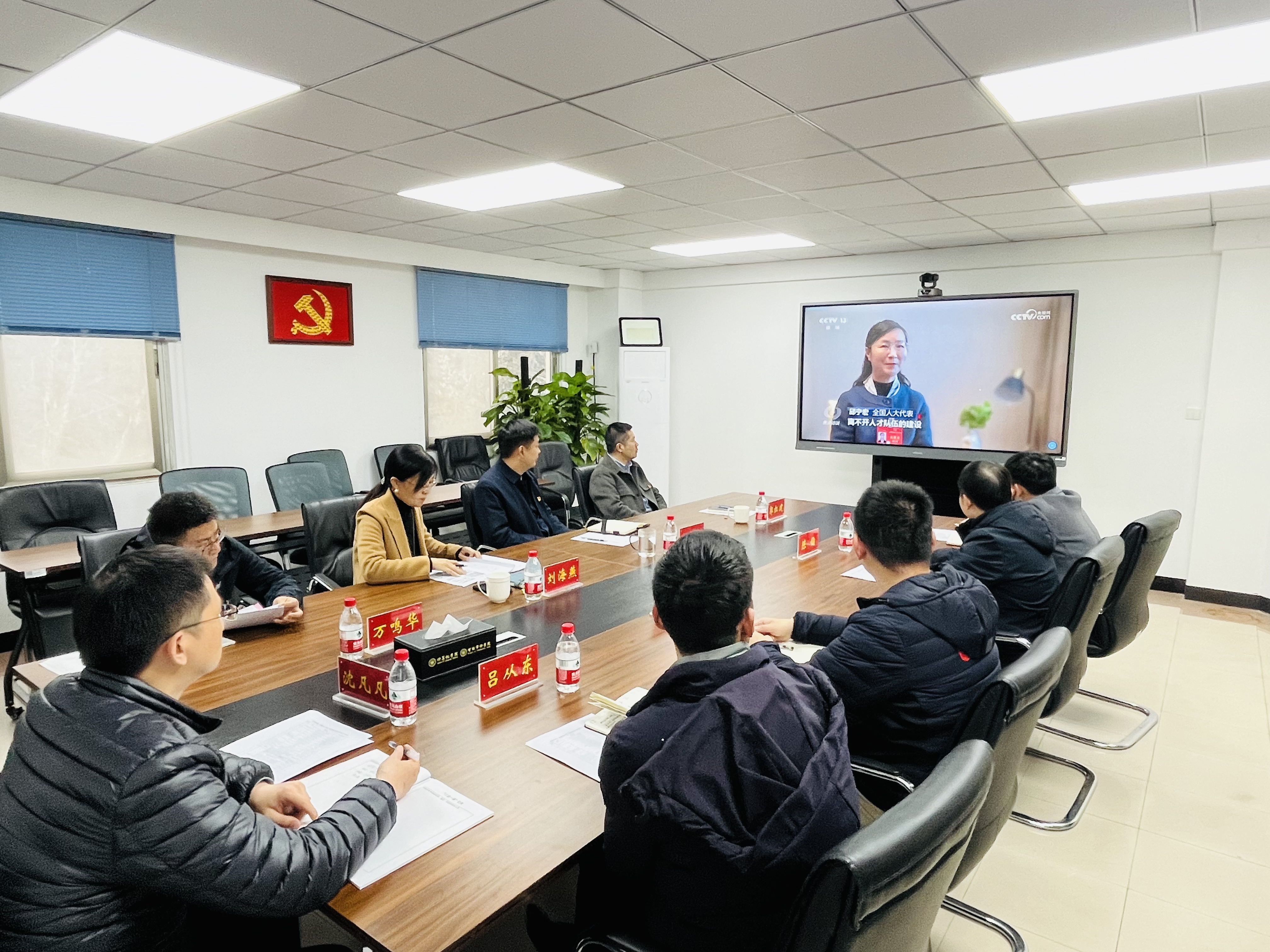 与会人员观看了习近平总书记两会期间三下团组的新闻视频,结合视频内容,与会人员分享了学习心得。
