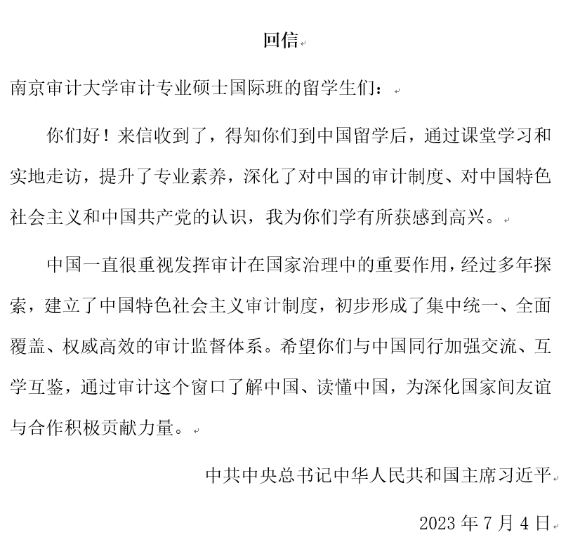 接着,学习了《习近平总书记回信精神》的核心内涵,习近平总书记给伟德体育审计专业硕士国际班的职工回信,激励他们积极促进国家间友谊与合作。在学习过程中,大家深刻认识到习近平总书记的回信体现了党对青年一代的关爱与期望。总书记鼓励职工们为深化国家间友谊与合作做出积极贡献,这不仅是对他们的期许,也是对全体青年的寄语。通过学习,大家更深入地理解了回信的精神内涵和意义,更清晰地认识到了自己在其中的角色和责任。