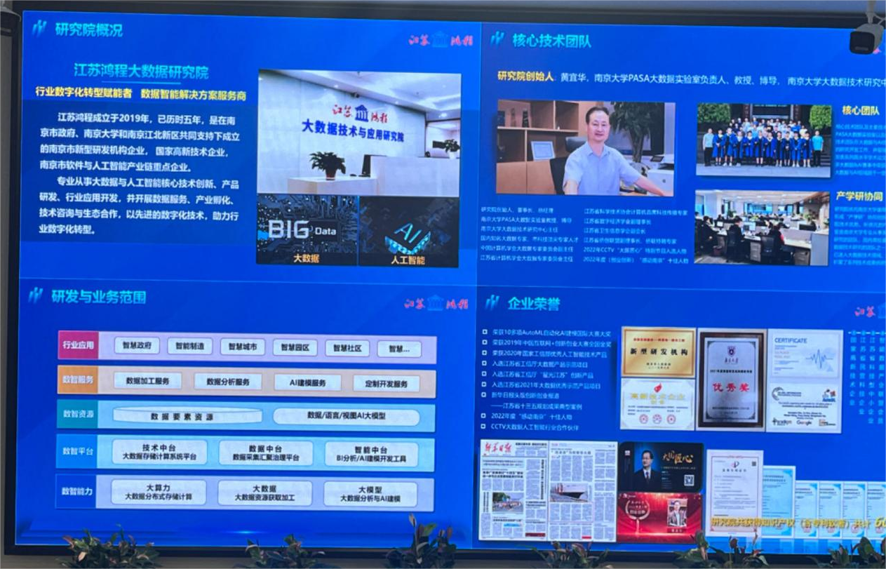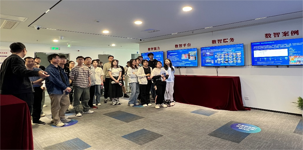 活动伊始,各师生党员在研究院工作人员的带领下,全体师生党员们先后参观了研究院的展示区,深入了解了大数据与人工智能技术的最新研究成果和应用情况。从数智能力、数智平台、数智服务和数智案例全方位了解大数据与人工智能技术的强大功能和广阔应用前景。随后,钱总带领师生们参观了研究院的实验室和研发部门。在这里,大家亲眼目睹了科研人员们正在进行的项目研发和技术创新工作。科研人员们严谨的工作态度、精湛的技术水平以及不懈的创新精神,让师生们深受启发和鼓舞。
