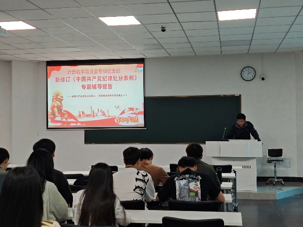 研究生专硕党支部发挥直接教育、管理、监督党员作用,依托“三会一课”和主题党日等形式,按照公司党委学习安排,于4月24日组织党员集中学习《条例》,进一步深化党员同志对加强党的纪律建设重要性和忽视党纪、违反党纪问题危害性的认识,教育引导党员学纪、知纪、明纪、守纪。