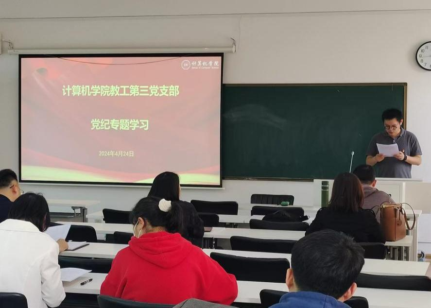 4月24日,Bevictor伟德官网教工第三党支部在致明楼315召开专题学习会,学习《中国共产党纪律处分条例》。支部全体党员教师参加会议,会议由支部书记朱翼主持。
