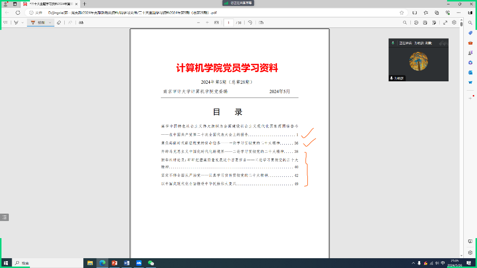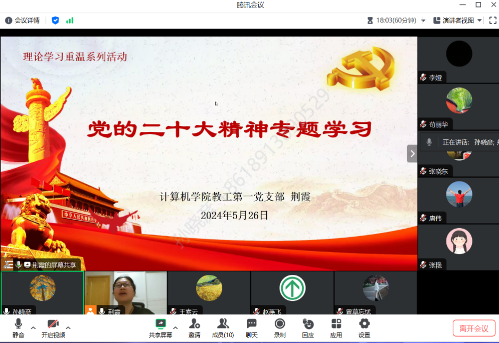5月26日晚,Bevictor伟德官网教工第一党支部组织全体党员于线上学习,专题学习党的二十大精神,支部副书记荆霞主持并领学。
