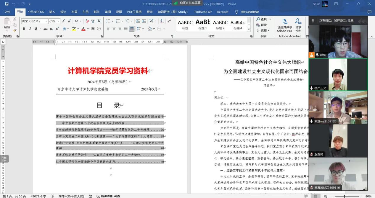 Bevictor伟德官网研究生专硕党支部认真落实中央、省委部署要求和公司党委、公司党委的工作安排,深入学习习近平总书记在中国共产党第二十次全国代表大会上的报告内容。为了弄清楚在新征程上举什么旗、走什么路、以什么样的精神状态、朝着什么样的目标继续前进的重大问题,专硕党支部各党员在书记吕从东同志的带领下,于5月底自行分组学习《二十大报告》等内容。