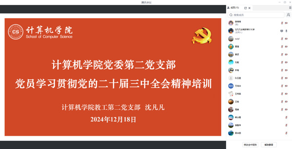 12月18日,Bevictor伟德官网教工第二党支部全体党员通过线上线下混合形式召开了支部大会。此次大会旨在以习近平新时代中国特色社会主义思想为指导,深入学习党的二十届三中全会精神,理解全面深化改革的核心内容。会议由支部书记沈凡凡主持并领学相关精神。